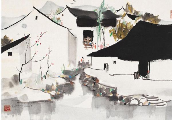 在滿足了基本需求后,孟浩凡才開(kāi)始考慮,如何為這座古鎮(zhèn)保留傳統(tǒng)江南民居的神韻,又體現(xiàn)出現(xiàn)代學(xué)的美感和創(chuàng)意。他想到了畫家吳冠中。孟浩凡說(shuō),比起具象的元素,他更多考慮的是保留“氣質(zhì)”?!氨热缯f(shuō)你看這色調(diào),色調(diào)是白墻綠瓦,中間有一些灰色系的這種磚,都是老色調(diào)的基底給我們的感覺(jué)。這種壓頂?shù)木€條,像吳冠中的畫,都是很抽象的嘛。畫江南民居,他畫出來(lái)很抽象的藝術(shù)畫,沒(méi)有具象的符號(hào),但是你一看這個(gè)東西它就是江南的,因?yàn)槲蓓數(shù)倪@種曲線、線條,勾勒出了江南的這種俊秀?!?/p>