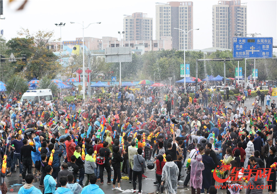 金羊網(wǎng)訊 記者湯銘明攝影報(bào)道:2017年2月27日,農(nóng)歷二月初二,“龍?zhí)ь^”的日子,東莞東坑鎮(zhèn)迎來了一個(gè)盛大而獨(dú)特的地方節(jié)日——二月初二“賣身節(jié)”。每年這個(gè)時(shí)候,東坑的居民都會(huì)舉行隆重的歡慶活動(dòng),當(dāng)中“射水狂歡”就是重頭戲!街坊們走上街頭,盡情地互相潑水,祝福的水花飛濺,場面熱鬧壯觀。