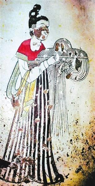 那么,唐初流行了幾十年的“羃”是什么樣子?從文獻(xiàn)記載看,它的特點(diǎn)是“全身障蔽”?!杜f唐書(shū)·李密傳》記載李密投降唐朝后再次反叛,帶領(lǐng)上千士兵,化妝成女性,戴羃,羃內(nèi)藏刀,到縣城后,變裝持刀殺出,占領(lǐng)了縣城。我們可以設(shè)想一下,上千“女性”穿戴著羃在道路上行走,路人不僅不以為怪,而且不知是士兵,可見(jiàn)“羃”的流行,以及遮蔽之嚴(yán)??上У氖?,目前從文物資料中還找不到“羃”的確切形象。1990年,在盜掘后的唐太宗燕妃墓壁畫(huà)中,有一幅被考古工作者定名為“捧羃女侍圖”,似乎仕女捧的是“羃”。