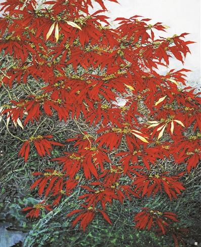據(jù)閆國(guó)星介紹,這幅作品是他的老師給他布置的“命題作文”,為了完成作品,他特地坐飛機(jī)去西雙版納觀察野生一品紅,并在那里住了一個(gè)月,專門畫這個(gè)題材。因?yàn)轭}材新穎,傳統(tǒng)的筆墨無法表達(dá)其神韻,因此在畫法上,閆國(guó)星進(jìn)行了大膽創(chuàng)新,在傳統(tǒng)畫法中融入現(xiàn)代畫法,最終這幅佳作才得以問世。