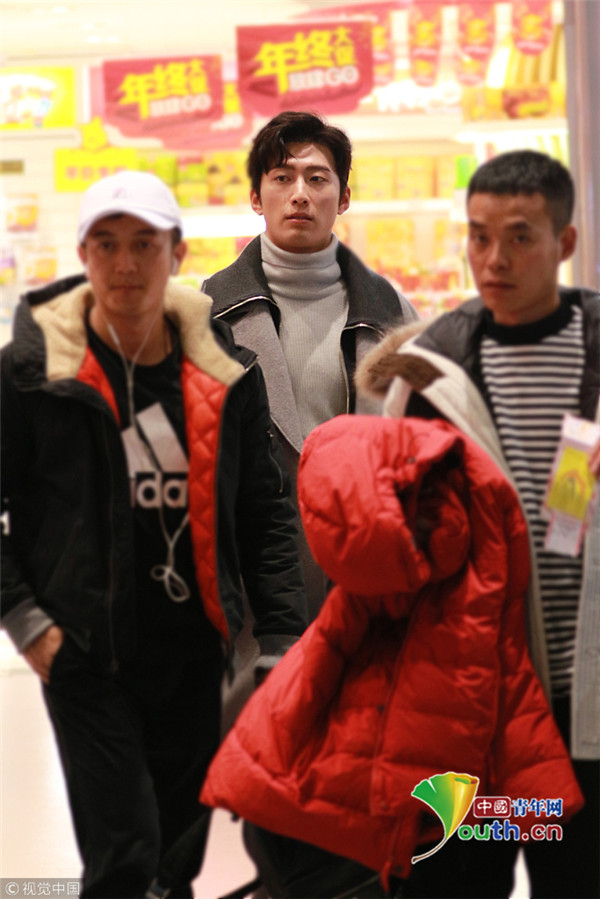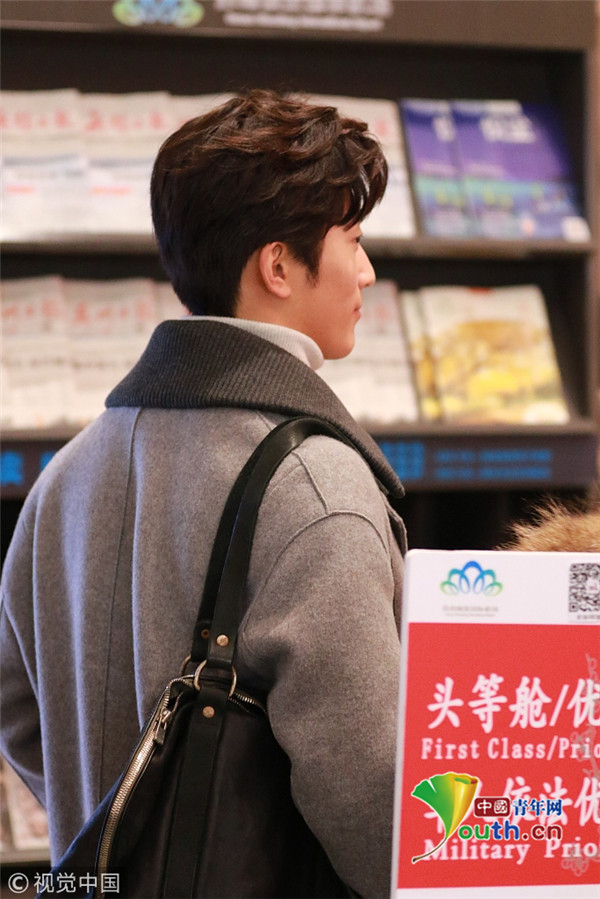 2017年12月11日,無錫,竇驍灰大衣帥氣現(xiàn)身無錫機場,見攝影師拍圖隔著玻璃比V,暖男無疑了!