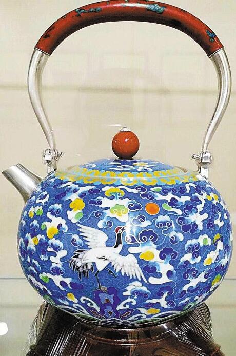 盛世一品純銀景泰藍配螺鈿大漆煮水壺
