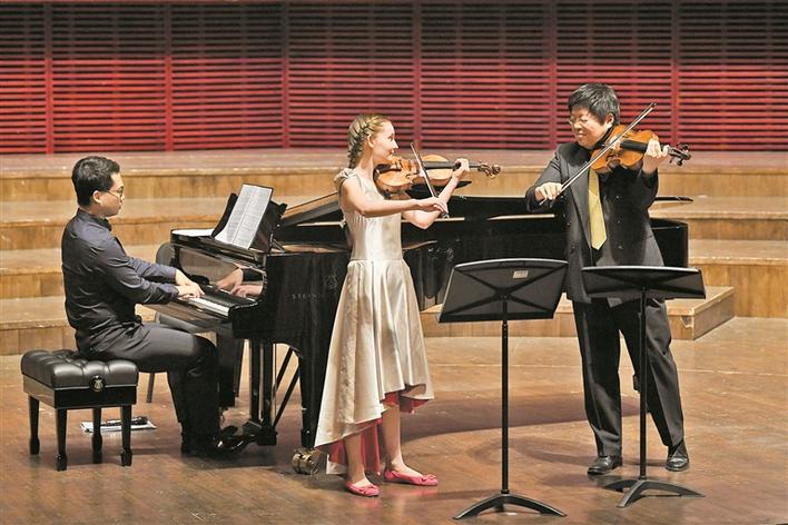 在音樂會的上半部分,艾瑪用小提琴和鋼琴演奏巴赫、舒伯特和斯卡拉蒂的名曲,以及她創(chuàng)作的鋼琴奏鳴曲,并聯(lián)手我國中提琴演奏家、教育家白明,青年鋼琴演奏家沈璐和青年女高音歌唱家陳麗安一齊奏響她創(chuàng)作的三重奏、小提琴協(xié)奏曲,以及歌劇《灰姑娘》選段。值得一提的是,歌劇《灰姑娘》是艾瑪10歲時(shí)完成的一部長篇歌劇,并在2016年與祖賓·梅塔大師聯(lián)合制作了該作品的完整版,以更為豐滿的面貌在維也納首演,獲得了觀眾起立鼓掌以及來自國際范圍內(nèi)的好評。