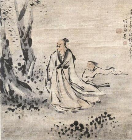 指畫以筆畫作為基礎(chǔ),先要將筆畫學(xué)好以后,才能進(jìn)一步學(xué)畫指頭畫。高其佩早年打下了以筆作畫的基礎(chǔ),觸類旁通,發(fā)展到專門以指作畫,得心應(yīng)手揮灑自如,創(chuàng)作指畫均信手一揮而就,有“頃刻數(shù)十幅”之說,留下的題畫詩屏、詩軸、斗方、詩卷等書法墨跡不多,指畫作品卻為數(shù)眾多,被多家博物館收藏。如收藏于武漢博物館的高其佩指畫作品《人物指畫圖》軸,為高其佩指畫代表作之一。此畫線條生動流暢,布局空靈合理,設(shè)色淡雅清麗。人物形態(tài)逼真,面部用尖指甲細(xì)勾,簡練傳神,衣紋指頭指甲并用,頓挫自如。畫面上,秋風(fēng)颯爽,落葉繽紛,一老一少逆風(fēng)而行走在路上,小童有不勝風(fēng)力、趔趄前行之感。只見衣帶飄拂,發(fā)絲飛揚,天色暗淡,樹木隨風(fēng)搖曳,運筆轉(zhuǎn)折頓挫間自然無痕,一幅秋風(fēng)掃落葉的情景躍然紙上。