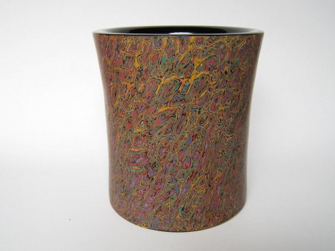 談到從事漆藝的經(jīng)過(guò),羅獻(xiàn)兵老師說(shuō),主要得益于爺爺留下的2本書(shū):一本是《文心雕龍》,一本就是既無(wú)書(shū)皮、也無(wú)目錄的匯集了中國(guó)歷代漆藝典故的油印小冊(cè)。據(jù)這本無(wú)皮書(shū)記載:“……又清嘉間浙江羅宣蓀善漆,有填漆彩髹之器皿又以五彩稠漆堆成花葉之色,又作種種之斑紋磨平之如畫(huà)……。60年代未,這本“無(wú)皮書(shū)”始終未離他爺爺?shù)淖笥?,老人家總是手捧那本無(wú)皮線裝書(shū),時(shí)而思,時(shí)而記,其他百事不沾。這本無(wú)皮書(shū)現(xiàn)在成為羅氏傳承的唯一依據(jù)。羅家從太祖輩起,就世代從事漆藝,一扎根就是近200年,羅獻(xiàn)兵已是第六代。用他的話說(shuō),“正是爺爺贈(zèng)予的冊(cè)子里描述的關(guān)于漆器迷幻般的漆彩世界的好奇,砥勵(lì)著我在漆藝這個(gè)充滿五彩斑瀾的夢(mèng)幻世界里探尋、摸索,并甘于清貧,樂(lè)此不彼。”