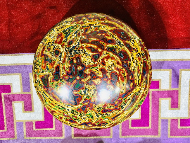 犀皮漆,又稱(chēng)犀皮、西皮、虎皮漆,此技法起于唐朝,在宋朝時(shí)十分流行。羅氏犀皮漆器是我國(guó)古代數(shù)百種髹飾漆藝中獨(dú)具特色的一種,是傳統(tǒng)的髹飾漆藝在臨海的遺存。從元、明至清道光年間,臨海犀皮髹漆工藝盛極一時(shí)。羅氏犀皮漆藝以紅、黑、黃數(shù)色互換融入表面髹飾,以磨顯填漆、髹漆裝飾的一種傳統(tǒng)漆藝。犀皮漆器制作工藝繁瑣,周期長(zhǎng),需耗時(shí)六到八個(gè)月,分制胎,灰坯,制漆,設(shè)色,起紋,填漆,黍包漆,研磨,推光,揩清等十道工序。羅氏犀皮漆器現(xiàn)有三大類(lèi),三十多個(gè)品種,魔盒類(lèi)有首飾裝飾盒;文房類(lèi)有印鑒盒,筆洗,茶葉罐,漆盤(pán),筆筒;碗具類(lèi)有漆碗,漆盆等。