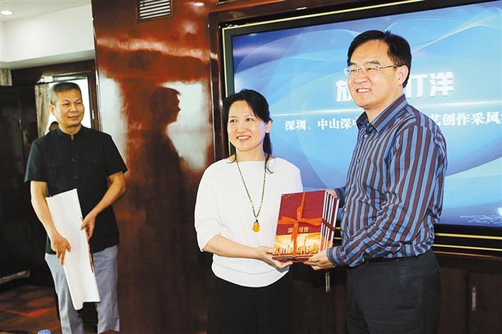 在采風(fēng)活動中,廣東省作協(xié)副主席、中山市政協(xié)主席丘樹宏向深圳文藝家介紹了偉人故里中山市社會經(jīng)濟發(fā)展情況。他說,深圳與中山淵源頗深,現(xiàn)在橋還沒通,但兩地文化先通、藝術(shù)先通、人心先通。深圳市文聯(lián)黨組書記、主席李瑞琦表示,此次兩地文藝界聯(lián)合組織采風(fēng)活動,增進了文藝家們的聯(lián)系,推動了兩地文藝創(chuàng)作。希望兩地文藝界常來常往,創(chuàng)作出更多反映偉大新時代的優(yōu)秀作品。