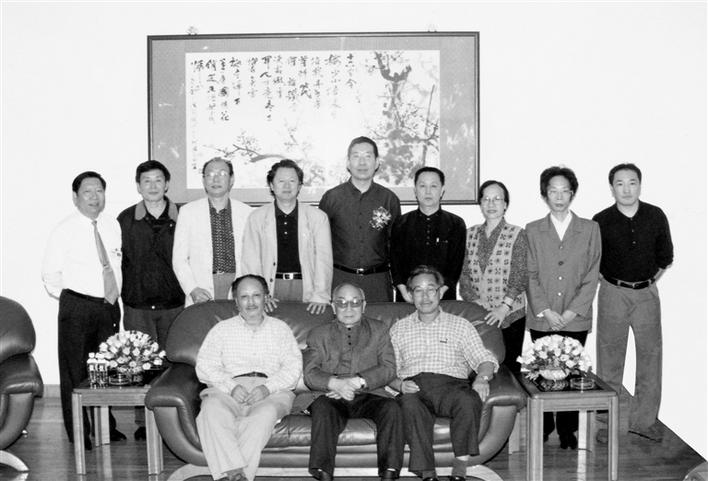 宋文治與一眾畫(huà)家在深圳。前排左起:王子武、宋文治、盧沉,后排左起:郭炳安、王晉元、苗重安、李寶林、董小明、林墉、王玉玨、盧輔圣、盧禹舜。