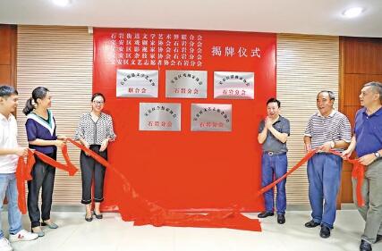 寶安日報(bào)2019年07月02日訊(記者 張浩 通訊員 羅宇文 實(shí)習(xí)生 陳品翰 文/圖)近日,石巖街道文學(xué)藝術(shù)界聯(lián)合會、區(qū)戲劇家協(xié)會石巖分會、區(qū)影視家協(xié)會石巖分會、區(qū)攝影家協(xié)會石巖分會、區(qū)雜技家協(xié)會石巖分會、區(qū)文藝志愿者協(xié)會石巖分會揭牌儀式在石巖街道舉行。各協(xié)會成立后將進(jìn)一步挖掘、利用石巖的文化資源,推動文化事業(yè)蓬勃發(fā)展。區(qū)文聯(lián)、石巖街道等單位領(lǐng)導(dǎo)出席了揭牌儀式。
