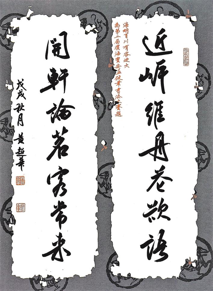 硬筆行書近舉維舟花欲語,聞軒論茗客常來。寶安區(qū)硬筆書法協(xié)會顧問黃超華