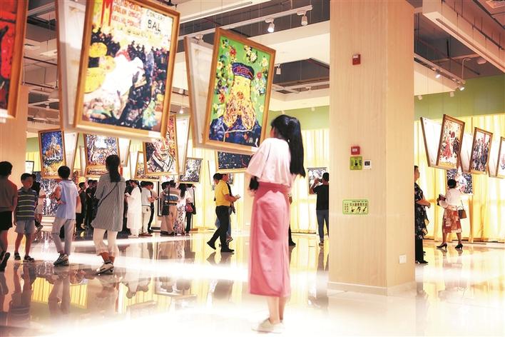 活動(dòng)現(xiàn)場(chǎng),他跟隨著視頻音樂(lè)手舞足蹈,一邊跳舞一邊創(chuàng)作,不一會(huì)兒,一幅生動(dòng)逼真的藝術(shù)畫作呈現(xiàn)在大家眼前。黃鳳榮介紹,“再創(chuàng)世界名畫100”是通過(guò)自己的表現(xiàn)手段,把世界名畫挑100幅出來(lái)重新演繹。這種演繹既保留它原來(lái)的面貌,同時(shí)又有新的元素注入。本次展覽共展出了106幅黃鳳榮的拼貼畫,作品以彩色貼紙作為主要材料,有蒙娜麗莎、街景、人物、植物等,每一幅都給觀眾不一樣的視覺(jué)沖擊。