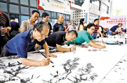 寶安日?qǐng)?bào)2019年9月19日訊 9月18日下午,以“中華民族一家親,同心共筑中國(guó)夢(mèng)——各族群眾共賀新中國(guó)成立70周年”為主題的書畫藝術(shù)筆會(huì)在龍華文化藝術(shù)中心舉行,80多位書畫名家現(xiàn)場(chǎng)揮毫,盡展中華民族文化藝術(shù)瑰寶魅力。