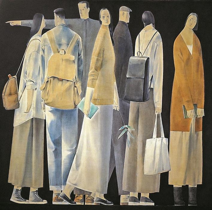 梁國(guó)輝的《新生》體現(xiàn)出一種新的圖像構(gòu)建的可能性,塑造出的人物形象具有生動(dòng)的情感和鮮明的個(gè)性;涂蓉蓉的《鏗鏘之音》以抽象的表現(xiàn)方式讓我們感到“無形”和“有形”之間的微妙關(guān)系;王彪的《收工之八十六》展現(xiàn)其寫實(shí)功底,并致力于探索如何用更加多元的藝術(shù)語言來表達(dá)自己的感受。
