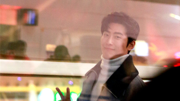 2017年12月11日,無錫,竇驍灰大衣帥氣現(xiàn)身無錫機場,見攝影師拍圖隔著玻璃比V,暖男無疑了!