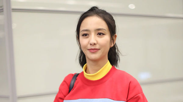徐海喬機場秀大長腿 紅色羽絨服個性時髦