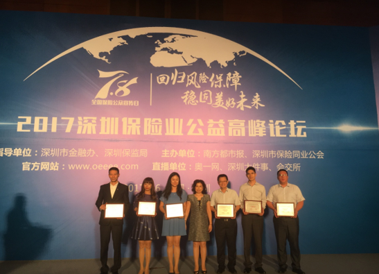 7月6日,由深圳市金融辦、深圳保監(jiān)局指導(dǎo),深圳市保險同業(yè)公會和南方都市報聯(lián)合主辦的“2017深圳保險業(yè)公益高峰論壇”在深圳五洲賓館召開,太平財險深圳分公司榮獲“2017深圳保險業(yè)精準(zhǔn)扶貧先進(jìn)單位”稱號。