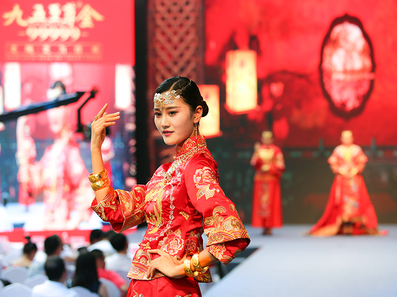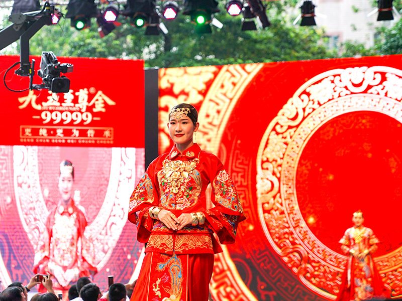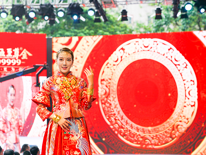 黃金文化與中國(guó)傳統(tǒng)婚慶文化淵源久遠(yuǎn),從古自今,黃金有情比金堅(jiān)之意,有滿滿的喜慶之感,在嫁娶之時(shí)通常作為聘禮中的重頭戲。結(jié)婚三金通常指的是項(xiàng)鏈、手鐲、戒指,寓意夫妻情比金堅(jiān),一生一世永相隨之意,因此這美好的寄愿習(xí)俗一直被傳承至今。黃金又是財(cái)富、身份的象征,結(jié)婚佩戴黃金首飾,彰顯家族的財(cái)富、地位與榮譽(yù),飽含家族人濃郁的情感與欣喜,可代代傳承!九五至尊金至囍新娘演繹的中華黃金婚慶文化,唯美唯俏,牽動(dòng)著每個(gè)人的心,掀起了中華黃金婚慶文化的熱潮。