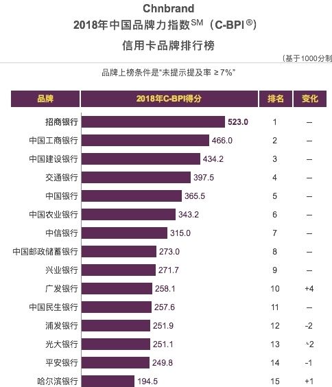 今年4月,2018年中國品牌力指數(shù)(C-BPI)品牌排名在北京權(quán)威發(fā)布。在一眾信用卡品牌中,招行信用卡以523分的絕對(duì)優(yōu)勢,再次獲得中國信用卡行業(yè)品牌力第一名。中國品牌力指數(shù)(C-BPI)實(shí)施8年來,招行信用卡7次問鼎第一,幾乎次次穩(wěn)居榜首。業(yè)內(nèi)人士分析,在市場持續(xù)變動(dòng)和白熱化競爭環(huán)境下,招行信用卡屢屢摘得品牌力指數(shù)第一,這離不開與用戶的品牌情感溝通及品牌年輕化戰(zhàn)略等因素。