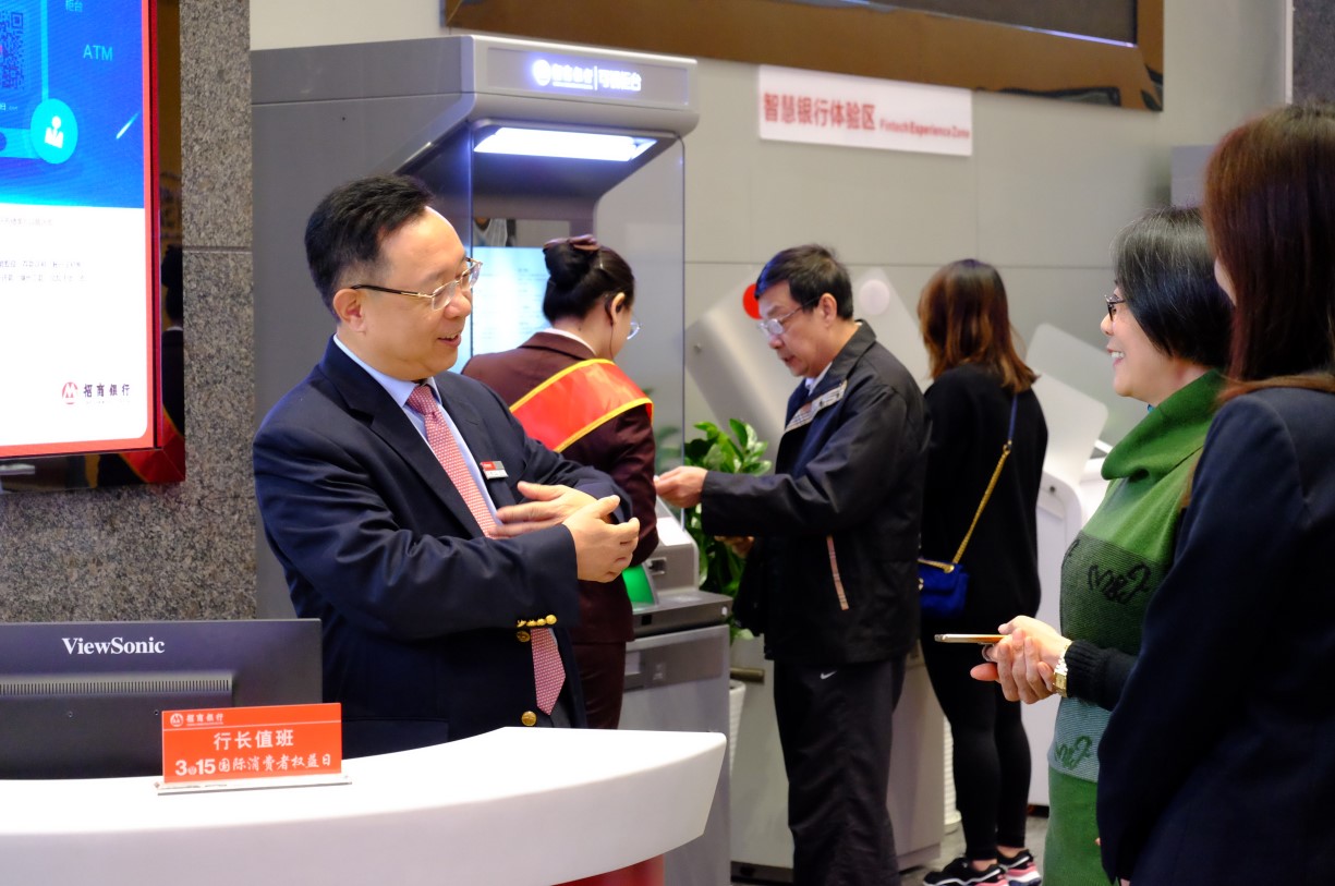 3月15日當天,招商銀行深圳分行開展了“黨委班子下基層”之“當值大堂經(jīng)理”活動。分行黨委班子成員以普通黨員身份深入一線,到營業(yè)網(wǎng)點大堂“戴黨員徽章、亮身份、作表率”,聯(lián)合支行行長隊伍,通過率先垂范宣傳消保知識,鼓勵基層黨員和群眾共同關(guān)注消費者聲音,前來辦理業(yè)務(wù)的客戶紛紛表示感受到招商銀行真誠貼心的服務(wù),猶如春日里縷縷陽光,溫暖著客戶的心。