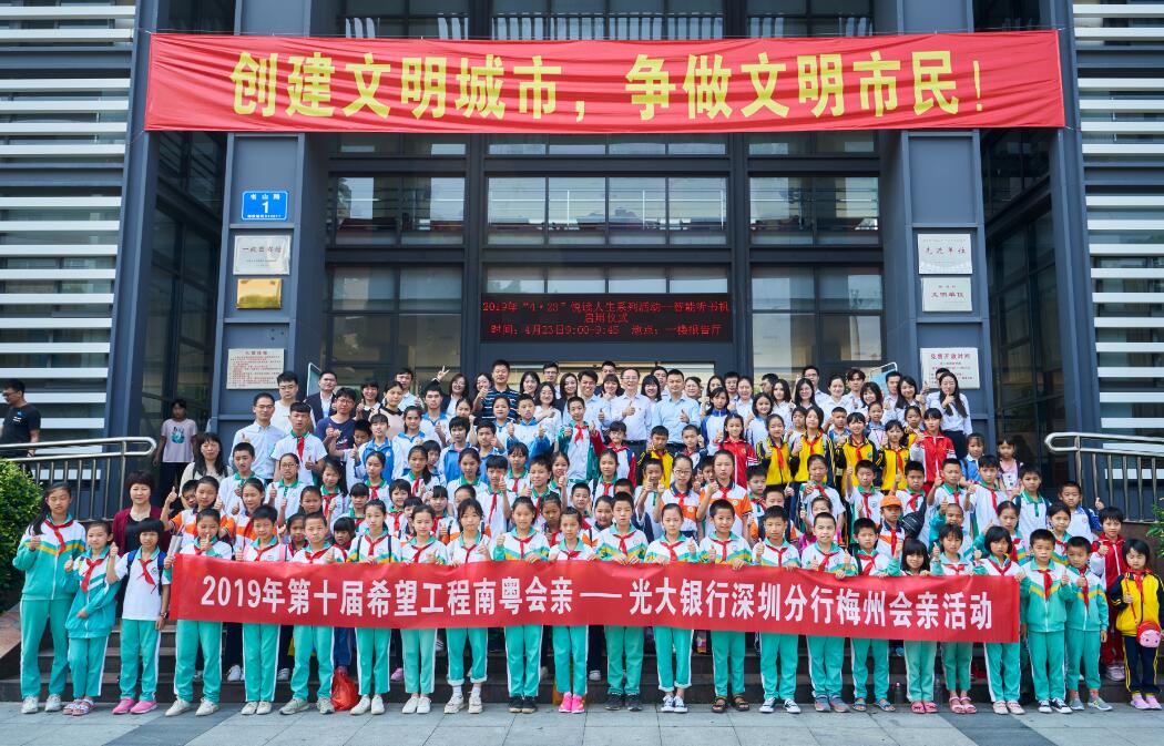 2019年第十屆希望工程南粵會親-光大銀行深圳分行梅州會親系列活動由共青團廣東省委員會等青年組織主辦,共青團梅州市委員會等單位承辦,光大銀行深圳分行作為協(xié)辦單位,走進廣東省梅州市開展了點對點扶貧工作。