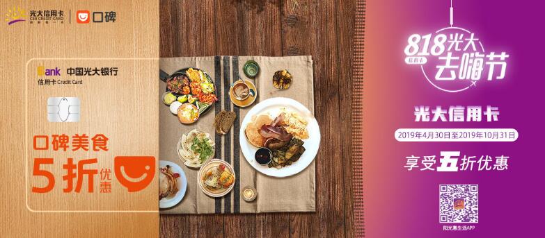 活動三:2019年6月1日-2019年8月31日,每周五、周六、周日10:00至24:00點整活動期間支付寶實名認(rèn)證個人用戶在口碑指定商圈,用戶使用支付寶賬戶綁定光大銀行信用卡,通過口碑手機客戶端或支付寶-口碑頁面購買線上商圈通用券,或進行當(dāng)面付支付消費,可有機會享受5折優(yōu)惠,最高封頂優(yōu)惠50元,活動期間每天限20000個優(yōu)惠名額,用完即止?;顒悠陂g同一用戶每天限享1次優(yōu)惠,同一用戶每月最多可享受2次優(yōu)惠。