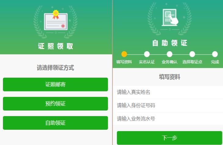 選擇“領(lǐng)取證照功能”