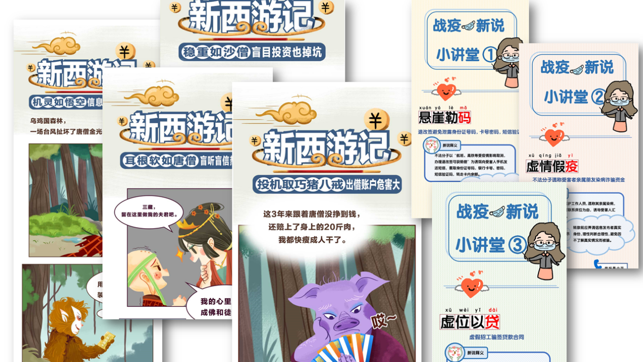 針對疫情期間頻繁出現(xiàn)電信網(wǎng)絡(luò)詐騙的情況,招商銀行深圳分行迅速反應(yīng),以原創(chuàng)漫畫、小視頻、線上直播及在線互動問答等新穎形式開展抗疫防騙線上宣教,對不同類型的詐騙套路進(jìn)行揭示和解析,如虛假售賣醫(yī)用口罩、以慈善募捐名義騙取捐款等,及時(shí)對消費(fèi)者進(jìn)行風(fēng)險(xiǎn)提示。除此之外,還以普及金融消費(fèi)者享有的八項(xiàng)法定權(quán)利、倡導(dǎo)金融消費(fèi)者依法理性維權(quán)、宣傳個(gè)人征信業(yè)務(wù)網(wǎng)上辦理、識別非法金融廣告等知識為內(nèi)容,創(chuàng)作貼合時(shí)事、實(shí)用有趣、形式多樣的宣教作品,有效提升了消費(fèi)者在疫情特殊時(shí)期的金融素養(yǎng)。