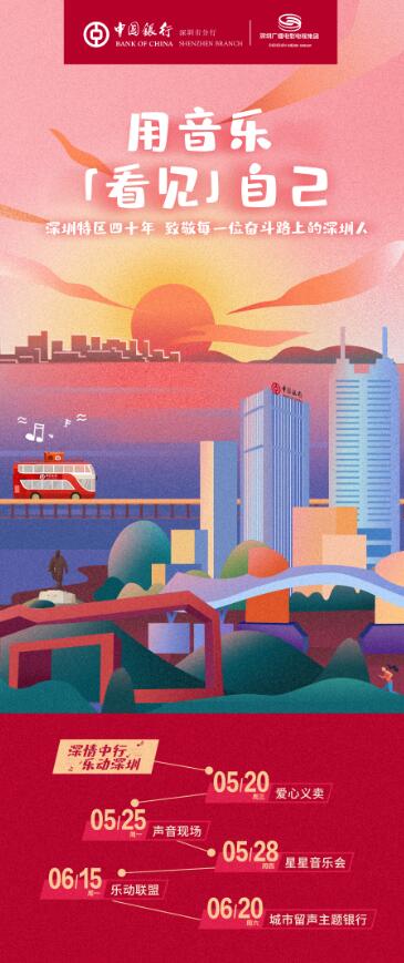 據(jù)了解,“深情中行樂動深圳”主題活動將持續(xù)至7月,深圳中行將與深圳廣電集團(tuán)將陸續(xù)推出“解鎖深圳成就”H5互動、“星星音樂會”、“聲音現(xiàn)場”、主題TVC、樂動聯(lián)盟京東包裹、城市留聲主題銀行等子活動,與深圳市民共同發(fā)現(xiàn)城市中的溫暖、奮斗中的故事,為深圳特區(qū)四十年唱出贊美的心聲。