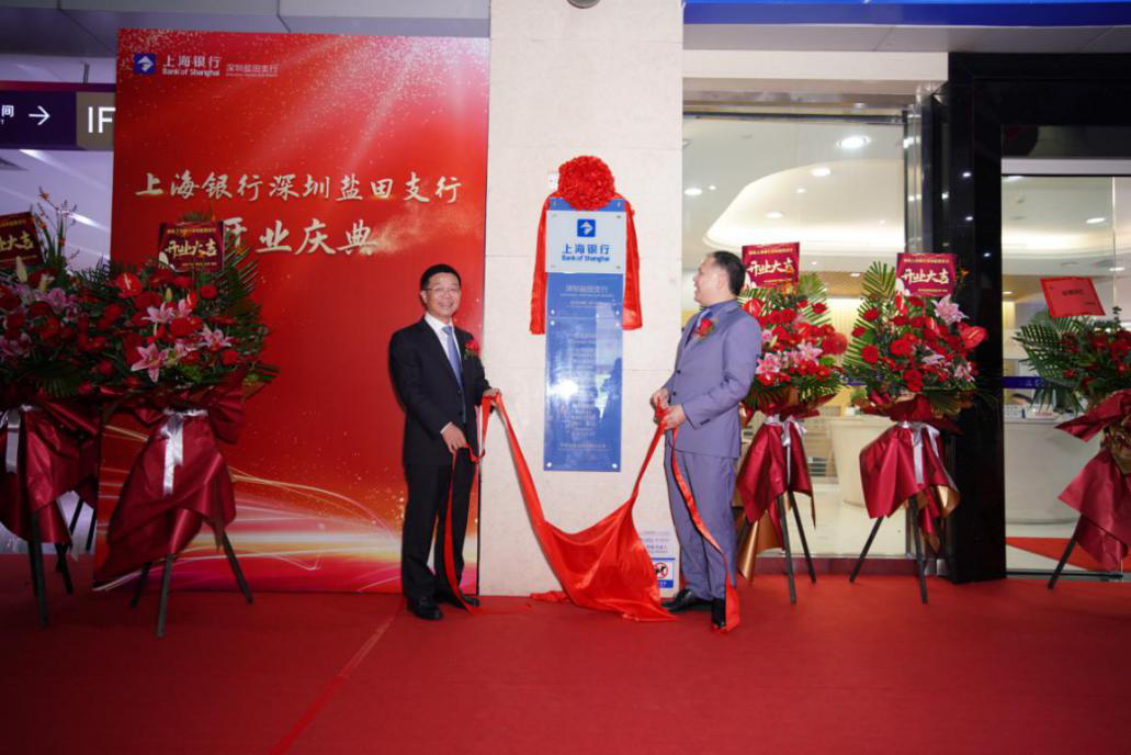 上海銀行深圳分行副行長(zhǎng)陳璇強(qiáng)與鹽田支行行長(zhǎng)劉源共同揭幕