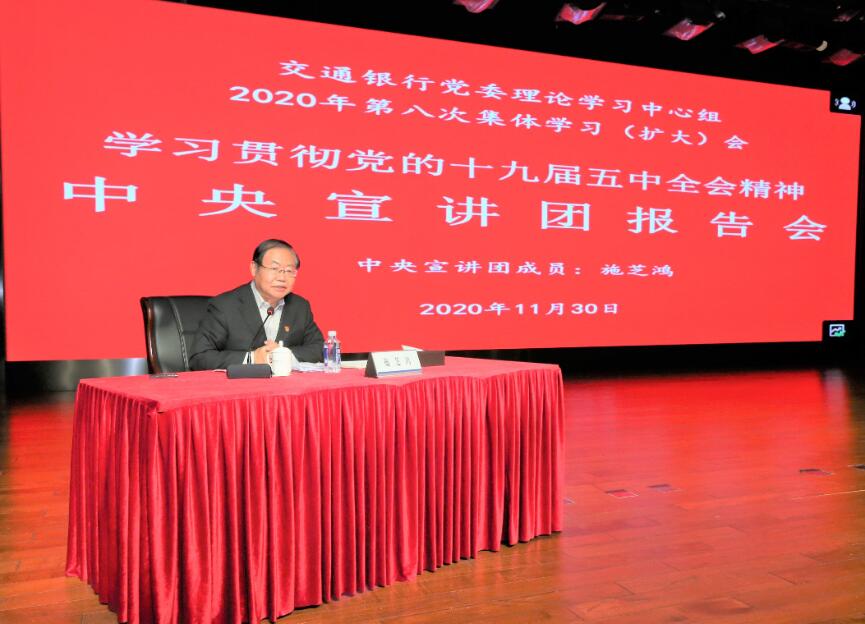 深圳新聞網(wǎng)·見圳客戶端2020年12月1日訊 昨日,交通銀行舉行學(xué)習(xí)貫徹黨的十九屆五中全會(huì)精神中央宣講團(tuán)報(bào)告會(huì)暨黨委理論學(xué)習(xí)中心組第八次集體學(xué)習(xí)(擴(kuò)大)會(huì)。中央宣講團(tuán)成員、中央政策研究室原副主任施芝鴻作宣講報(bào)告,黨委書記、董事長任德奇主持報(bào)告會(huì)。