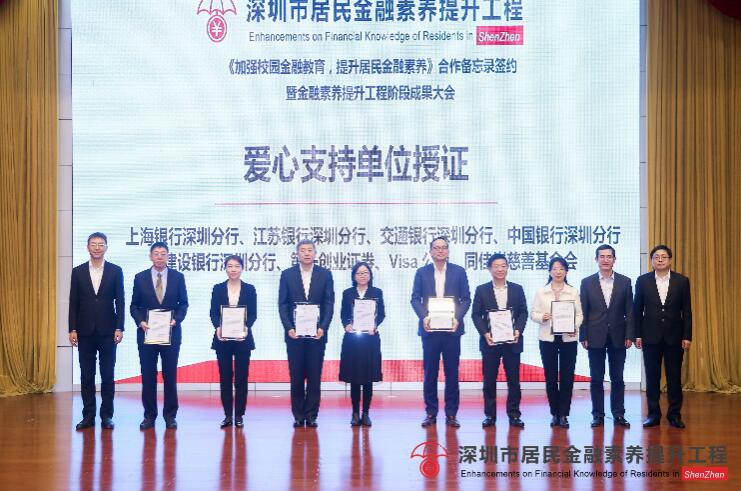 在隨后的授證儀式中,上海銀行深圳分行因?qū)ι钲谑芯用窠鹑谒仞B(yǎng)提升工程做出的突出貢獻,及推動深圳金融安全建設(shè)與可持續(xù)發(fā)展,被授予了“愛心支持單位”榮譽稱號。