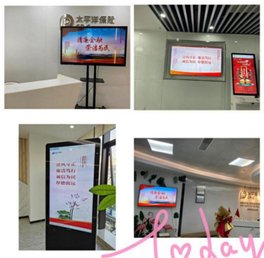播放清廉金融文化海報(bào),營造職場范圍
