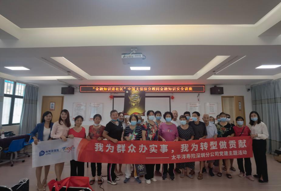 9月17日上午,中國(guó)太保壽險(xiǎn)深圳分公司黨委組織部與業(yè)務(wù)條線的黨員、職工及營(yíng)銷(xiāo)一線人員走進(jìn)華富街道田面社區(qū),面向社區(qū)的老年群體,開(kāi)展了“金融知識(shí)進(jìn)社區(qū)”金融知識(shí)講座。本次活動(dòng)以普及金融知識(shí)、宣講紅色金融史為主題,一是聚焦容易受到詐騙的老年群體,突出理性投資等宣傳教育重點(diǎn),積極開(kāi)展金融宣傳教育,加強(qiáng)知識(shí)普及和風(fēng)險(xiǎn)提示,防范金融詐騙活動(dòng);二是堅(jiān)持黨建引領(lǐng),緊密結(jié)合在黨和群眾中開(kāi)展黨史學(xué)習(xí)教育工作的有關(guān)部署,大力宣傳紅色金融史,積極與群眾面對(duì)面、做基層宣講員,持續(xù)推動(dòng)黨史學(xué)習(xí)教育走深走實(shí)。