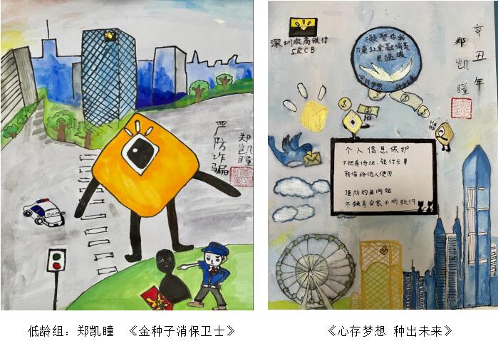 本屆“我是小小繪畫家”消保主題繪畫大賽,圍繞“孩子眼中的消保世界”題材展開,體現(xiàn)孩子對消費(fèi)者權(quán)益保護(hù)、金融風(fēng)險(xiǎn)防范、自我保護(hù)能力提升等方面的認(rèn)識,通過畫筆,描繪孩子眼中的金融消保工作。同時(shí),也是積極落實(shí)中國人民銀行深圳市中心支行、深圳銀保監(jiān)局、深圳銀促會組織開展的“金融知識普及月”“金融聯(lián)合教育宣傳月”活動號召,聚焦青少年人群,開展金融知識普及宣教活動。