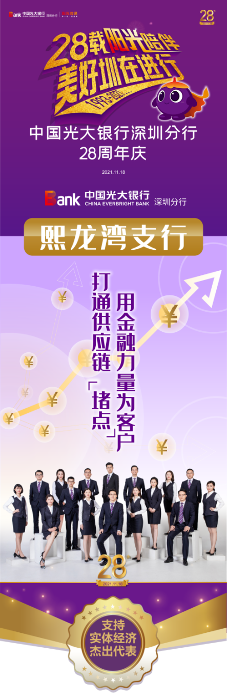 該支行始終秉承“客戶滿意,追求卓越”的價(jià)值觀,用金融力量為客戶打通供應(yīng)鏈“堵點(diǎn)”,與一大批優(yōu)質(zhì)企業(yè)建立了良好的合作關(guān)系。截止2021年11月,支行在分行內(nèi)對(duì)公客戶數(shù)量排名靠前。因此,在深圳分行28周年“十大最美光陰故事”評(píng)選中,熙龍灣支行榮獲支持實(shí)體經(jīng)濟(jì)杰出代表。