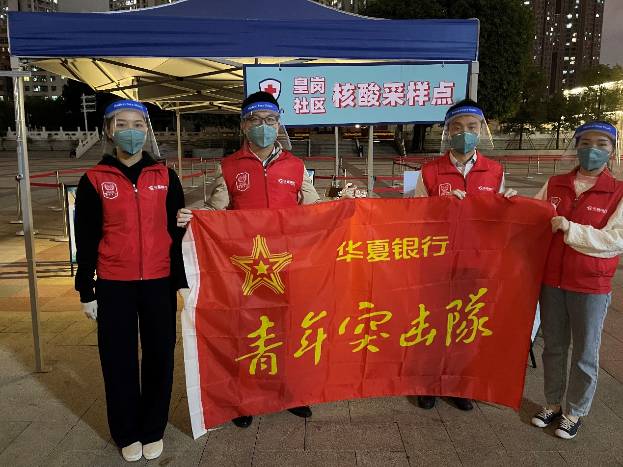 華夏銀行深圳分行在做好金融服務的同時,迅速響應號召,第一時間發(fā)出招募令,號召全行青年志愿者踴躍參與疫情防控。來自分支行的黨員、青年團員迅速集結,奔赴到疫情防控一線,在做好安全防護的基礎上,深入福田街道皇崗文化廣場、高發(fā)城馳廣場核酸采集點,協(xié)助防疫工作組維護現(xiàn)場秩序、身份信息登記等志愿服務工作,全面助力提升核酸檢測效率。對于一些帶小孩或者不熟悉掃碼程序的群眾,志愿者們熱情耐心給予指導,確保核酸采集點保持良好秩序。