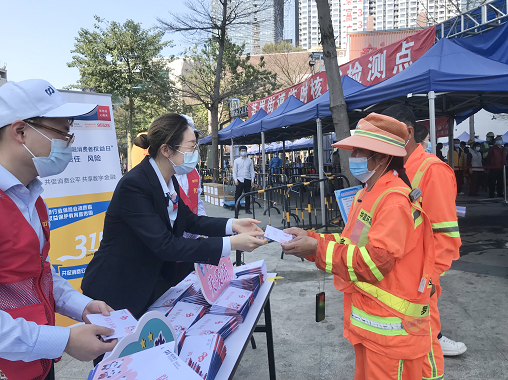 在筍崗街道,社區(qū)工作人員特地在核酸檢測點為環(huán)衛(wèi)工人們設(shè)置“綠色通道”,幫助他們快速完成核酸檢測。考慮到環(huán)衛(wèi)工人們普遍辨別能力較為薄弱,缺乏網(wǎng)絡(luò)與金融相關(guān)知識,容易成為被騙對象,志愿者們一一上前,深入淺出地為他們普及了防范電信網(wǎng)絡(luò)詐騙和非法集資等金融基礎(chǔ)知識,提醒不要輕易將個人信息泄露,讓環(huán)衛(wèi)工人掌握識破騙局的方法。