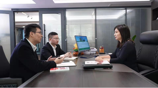 李江紅與團隊伙伴溝通工作(中國人壽壽險公司供圖)