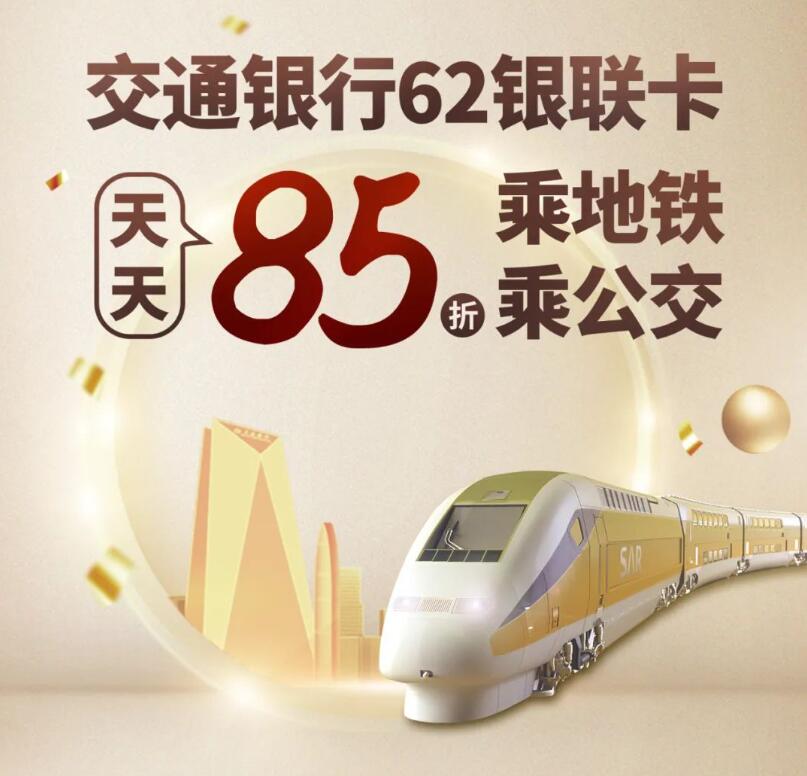 活動內(nèi)容:在深圳搭乘地鐵及公交出行,使用交通銀行深圳分行62開頭銀聯(lián)卡綁定云閃付乘車碼支付,可享“85折乘地鐵及公交”優(yōu)惠活動,單筆封頂優(yōu)惠0.15元至0.6元,每人每天限享2筆,活動期間天天可享優(yōu)惠。每天10000個名額,活動共計 680000 個名額,名額有限,先到先得。