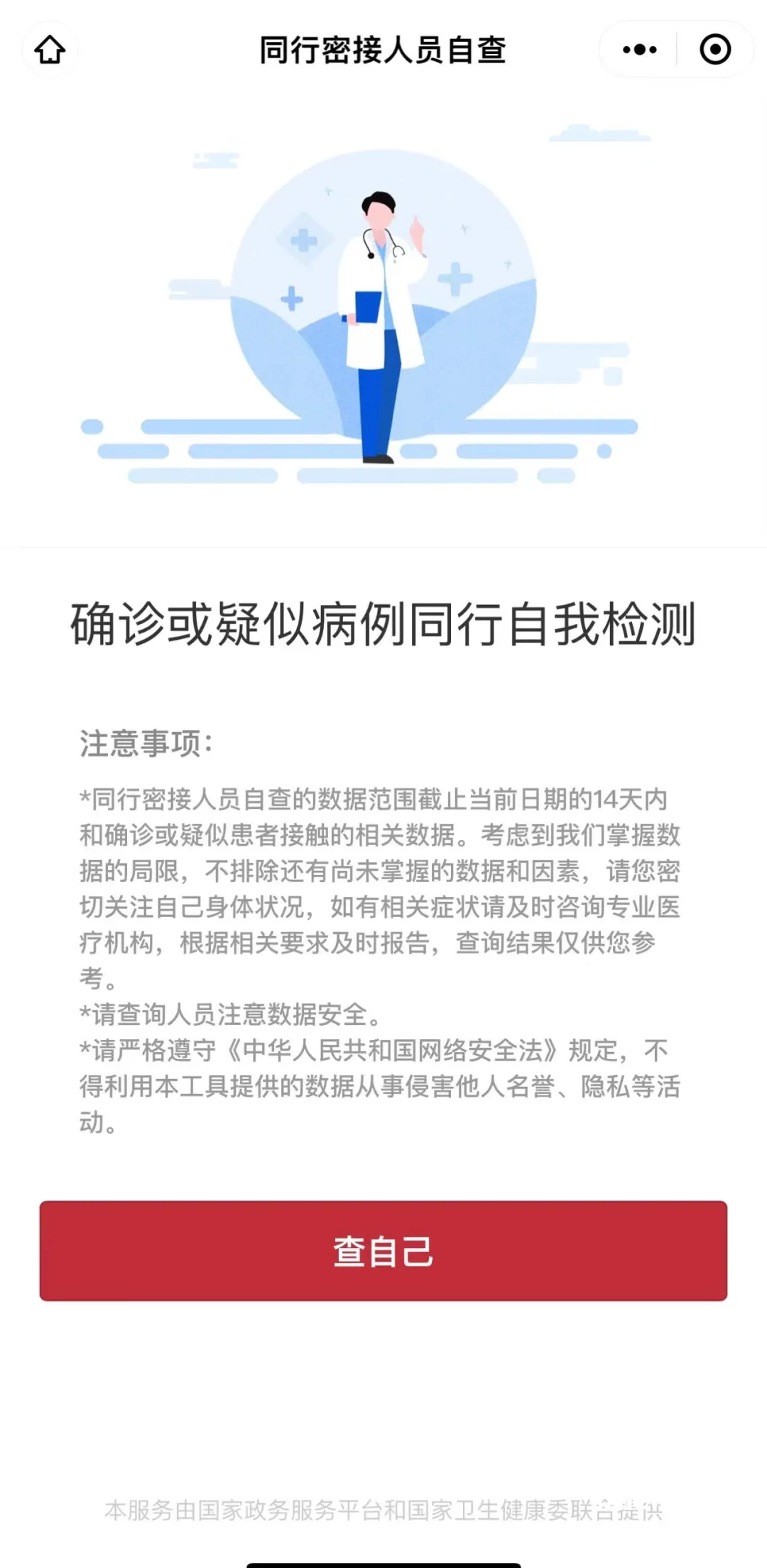 同行自查服務(wù)由國家政務(wù)服務(wù)平臺和衛(wèi)健委聯(lián)合提供,14天內(nèi)乘坐過飛機或者火車等公共交通工具出行的市民可掃描下方二維碼進行查詢。