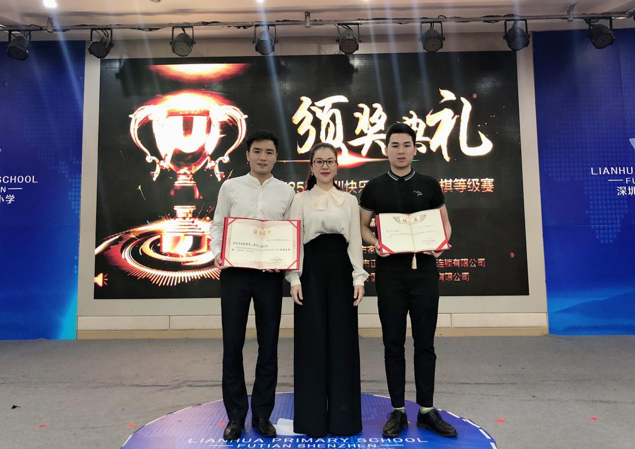 福田區(qū)蓮花小學(xué)校長(zhǎng)王華斌先生為獲獎(jiǎng)棋手頒獎(jiǎng)