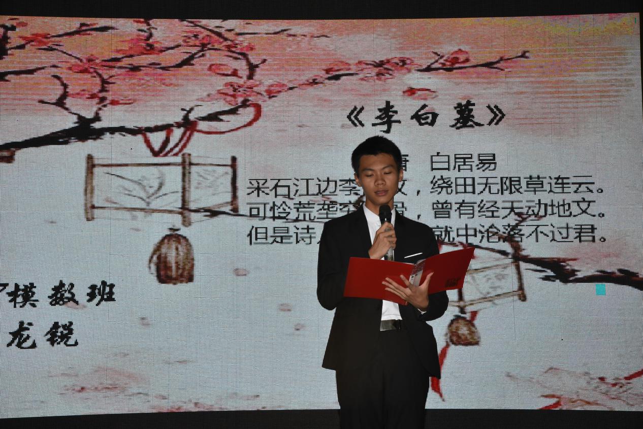最后,演出在特別節(jié)目——《琵琶行》單人獨舞中落下了帷幕,本次大賽最終評出了一、二、三等獎并給選手們頒發(fā)獎杯,活動正式走向尾聲。作為評委之一的方趙平老師為本次活動熱情點贊,他由衷地表示,讓詩歌滋養(yǎng)學子的心靈,陶冶學子的情操,有助于書香校園的建設,希望校企加強合作,共同 傳承經典。