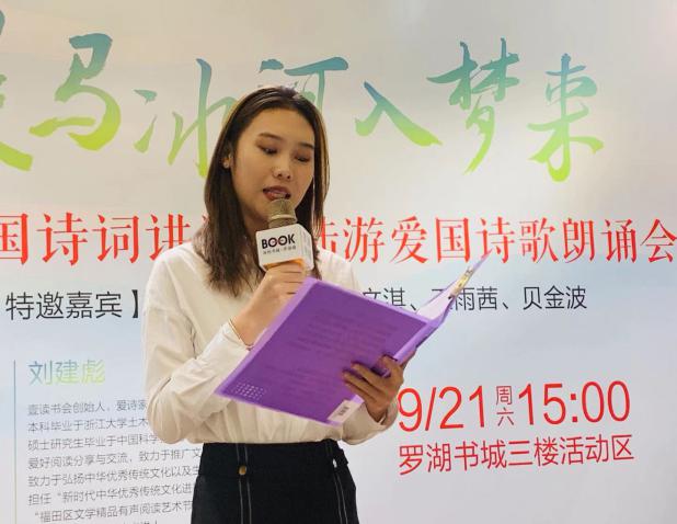 據(jù)悉,為弘揚愛國主義精神,壹書公司9月份安排了陸游、辛棄疾兩位著名愛國詩人的詩詞講讀和愛國詩詞朗誦,“詩詞,是詩人從心底里流露出來的生命體驗,在學習愛國詩詞、特別是朗誦愛國詩詞的過程中,我們更能深刻感受詩人的愛國情懷,從而引起強烈的共鳴?!眲⒔ū胝f道。 (通訊員:蔡淑琳)