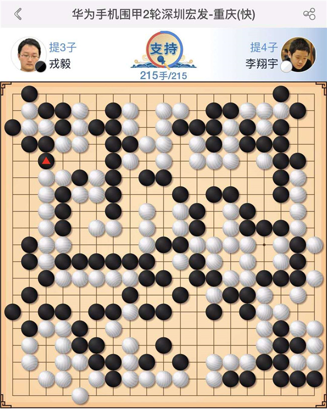 賽后,深圳宏發(fā)隊(duì)教練、著名世界冠軍羅洗河九段對(duì)四盤棋作了簡(jiǎn)要點(diǎn)評(píng):“第一臺(tái)陶欣然執(zhí)黑對(duì)陣?yán)钴幒馈W笙陆呛?3應(yīng)該先走24打交換一個(gè)次序,實(shí)戰(zhàn)虧損。中盤右下角形成打劫時(shí),黑棋轉(zhuǎn)換判斷錯(cuò)誤局面更加不利。后面中央黑棋再度制造劫爭(zhēng)無奈沒有劫財(cái),敗北?!薄暗诙_(tái)主將申旻俊執(zhí)白對(duì)陣楊鼎新。開局右下角作戰(zhàn)白棋退讓小虧一點(diǎn),中盤上方作戰(zhàn)時(shí)候雙方錯(cuò)進(jìn)錯(cuò)出,最后由于白棋下出緩手沒有把握機(jī)會(huì)換回局勢(shì)。官子時(shí)候黑棋發(fā)揮更好,擴(kuò)大優(yōu)勢(shì)至終局。”“第三臺(tái)快棋戎毅執(zhí)黑對(duì)陣小將李翔宇。白60分?jǐn)喙艉谄鍟r(shí)形狀不佳,黑機(jī)敏反斷白棋并做活,之后黑越戰(zhàn)越勇,215手,黑中盤勝?!薄暗谒呐_(tái)時(shí)越執(zhí)白對(duì)陣小將何語涵。開局平穩(wěn)白稍好,白52失誤走53更嚴(yán)厲。實(shí)戰(zhàn)被黑53跨斷后局面接近。中后盤雙方失誤都較多,最終黑棋幸運(yùn)的以3/4子差距獲勝?!?/p>