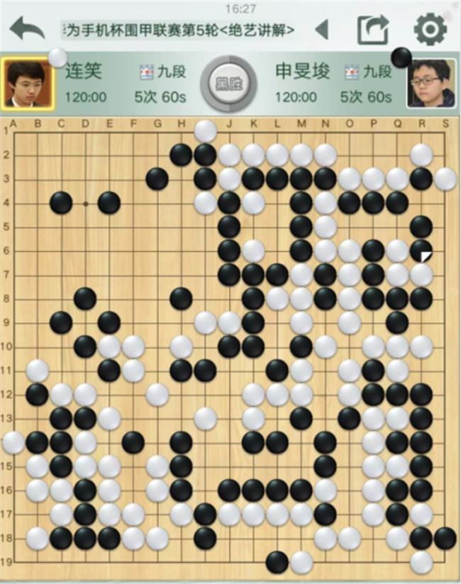 第三臺,快棋陶欣然執(zhí)白對陣?yán)顑A誠。中盤白棋打入右下黑棋模樣,黑棋應(yīng)對連續(xù)失誤,損失慘重一無所獲遂認(rèn)負(fù)。
