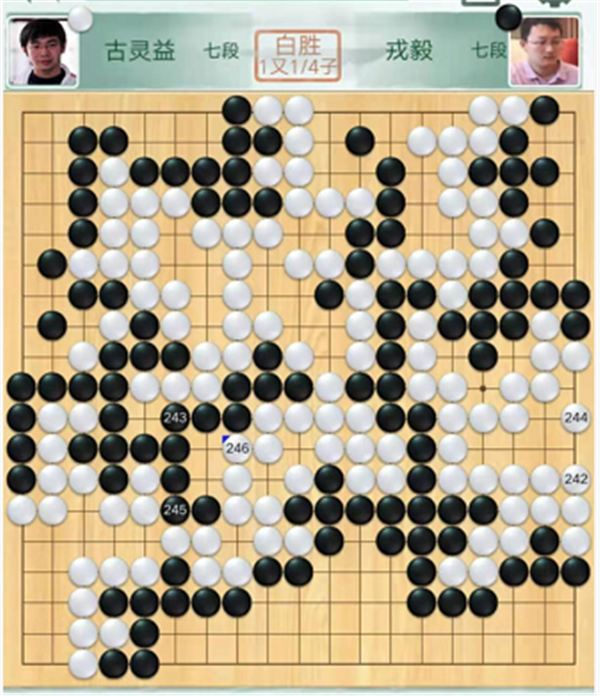 第三臺快棋,深圳隊的戎毅七段執(zhí)黑對陣成都隊的古靈益七段。黑棋開局采取取地策略。下方黑棋形狀處理保守,子效重復虧損。之后黑棋一直沒有明顯勝機,最終以1又1/4子落敗。戎毅執(zhí)黑1又1/4子負古靈益。