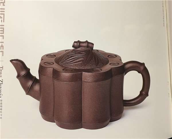 第六件,《亮節(jié)壺》以竹為主題,壺身由八節(jié)竹子圍起,竹節(jié)形的壺鈕、壺把、壺嘴相互呼應,壺蓋飾有竹牙竹葉,營造了秀美典雅,清朗高潔的風骨與氣質。