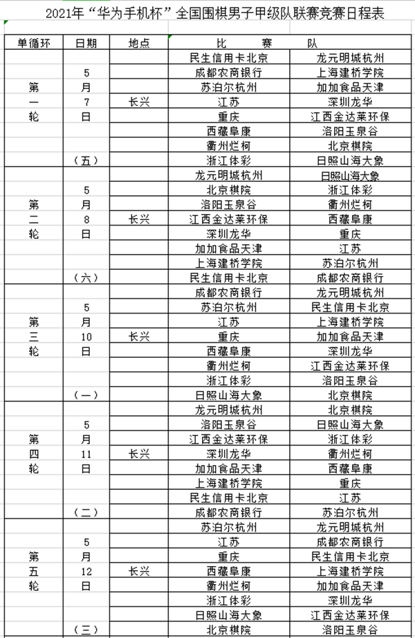 見圳客戶端深圳新聞網(wǎng)2021年5月6日訊(記者 周錦春)2021華為手機杯中國圍棋甲級聯(lián)賽今天在浙江長興拉開帷幕,首輪比賽將在5月7日進行。根據(jù)4月22日在中國棋院舉行的抽簽結(jié)果,次日首輪比賽對陣形勢如下:深圳龍華隊將對陣江蘇隊;衛(wèi)冕冠軍江西隊對陣重慶隊;上屆亞軍日照隊對陣浙江隊。