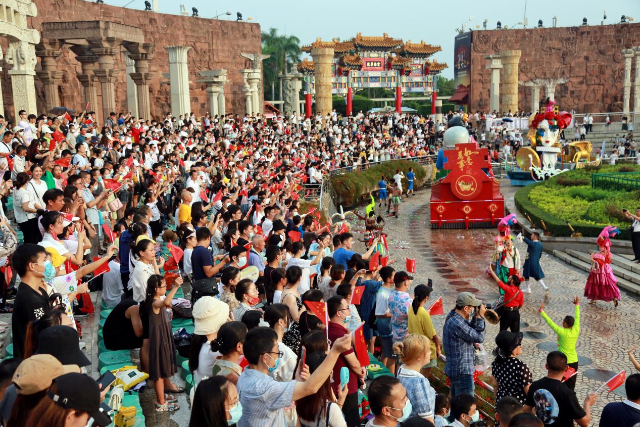 讀特客戶端·深圳新聞網(wǎng)2021年10月1日訊(記者 田志強 通訊員 陳嘉琳 黃海峰)今天,深圳世界之窗迎來第一波旅游小高峰。上午10:00整,世界之窗前廣場舉行了莊嚴的升國旗儀式,現(xiàn)場游客齊唱國歌,高亢嘹亮的歌聲響徹深南大道,激動人心。閘口處,俄羅斯歡樂家庭劇、異域風(fēng)情迎賓禮以國際歡樂氛圍喜迎八方來客。
