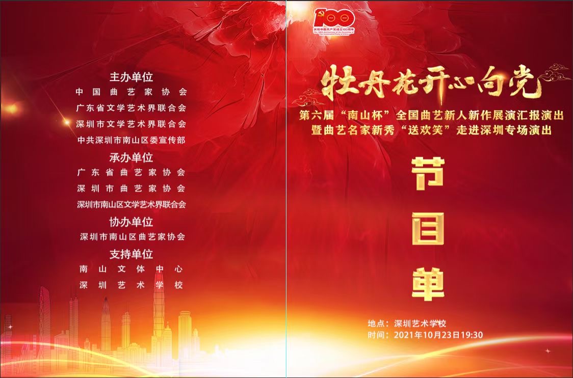 據(jù)悉,本次活動由中國曲藝家協(xié)會、廣東省文學藝術界聯(lián)合會、深圳市文學藝術界聯(lián)合會、中共深圳市南山區(qū)委宣傳部共同主辦。廣東省曲藝家協(xié)會、深圳市曲藝家協(xié)會、南山區(qū)文學藝術界聯(lián)合會共同承辦。